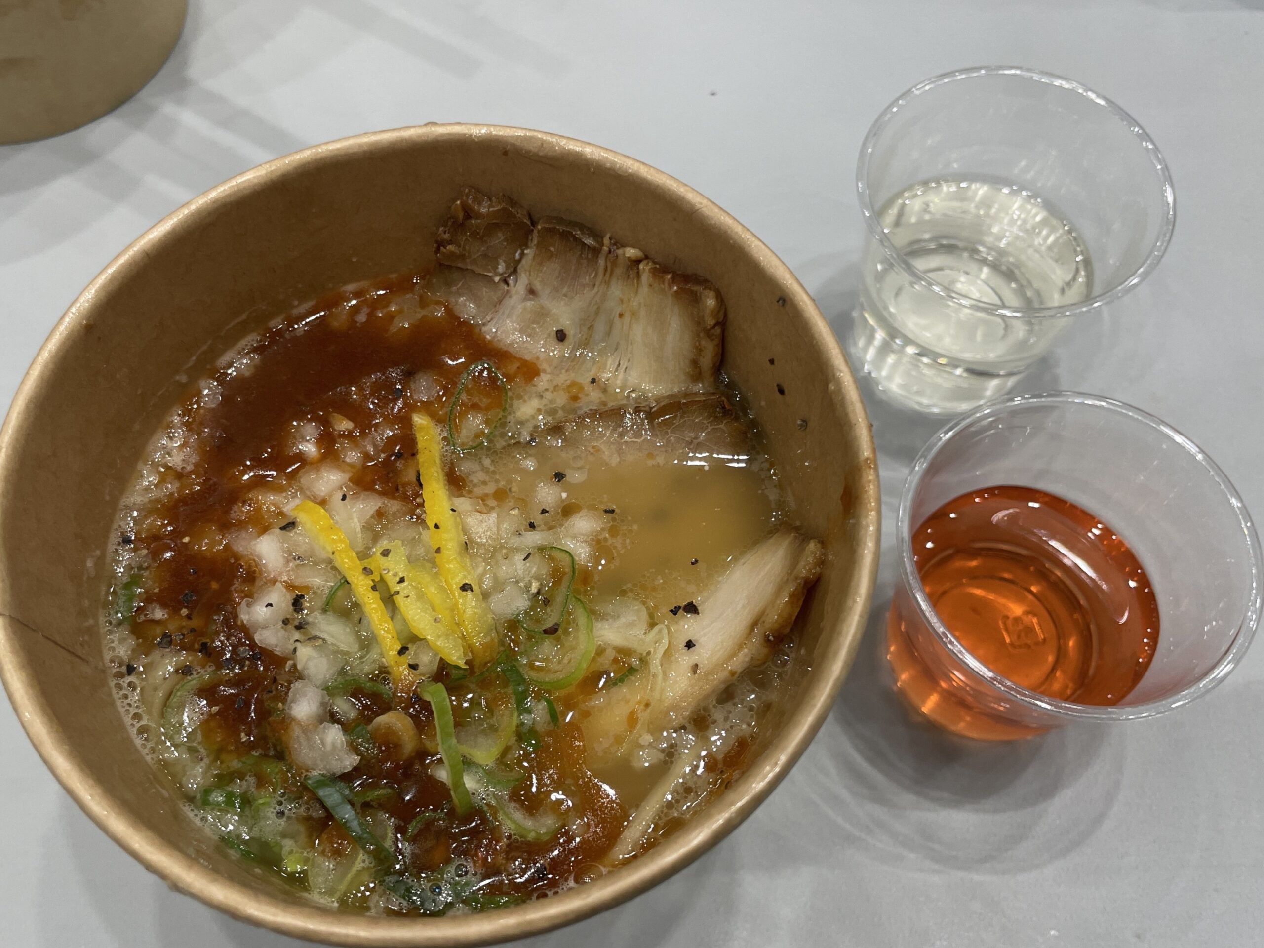 また、一部の自治体では、キッチンカーを設けて、海鮮や肉などの各地域自慢の特産品を実演販売した。記者が食したのは、宮城県岩沼市の「牛タン焼き」と、新潟県上越市の「日本海甘海老ラーメン」。牛タン焼きは歯ごたえがよくジューシーで、ラーメンは甘海老のダシがしっかりと感じられる、満足感のある一品となっていた。上越市のブースでは、100円から地元のワインや日本酒がテイスティングできるコーナーも設けられていた。キッチンカーは長蛇の列をなしており、昼すぎには売り切れとなる自治体が続出するなど、盛況ぶりが感じられた。